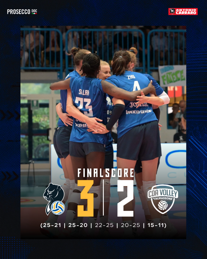 北京时间9月16日,意大利科内利亚诺女排迎来了新赛季的首场热身赛,在贝卢诺市VHV竞技馆举行的“瓦约特遇难者纪念赛”上,科内利亚诺与意大利A2级别球队塔尔马森斯展开对决,经过五局激战,最终以 3-2(25-21,25-22,22-25,20-25,15-11) 取胜,为新赛季揭开胜利序幕。