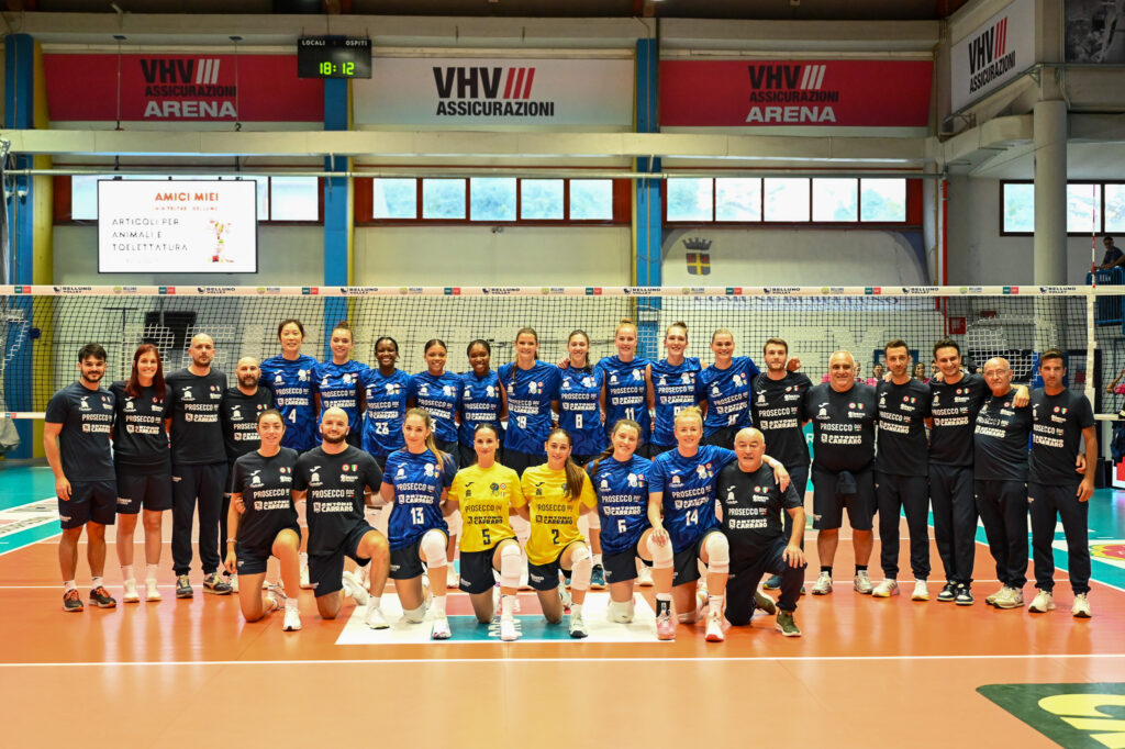 本次出战这场友谊赛名单情况包括了主攻朱婷、达尔德罗普、西拉,副攻卢比安、奇里切拉、穆纳里尼,接应哈克、阿迪格韦,二传沃沃什、埃韦特,自由人斯科纳米洛。另外还包括了年轻的球员朱莉娅·戈登、埃内斯库、阿莱西亚·福特和丽贝卡·艾玛雷蒂。