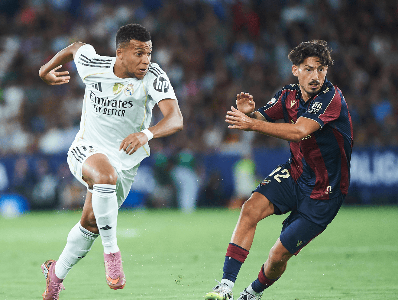 虎扑09月24日讯 西甲第6轮,皇马客场挑战莱万特,姆巴佩在下半场比赛连入两球。